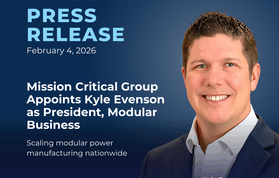 Proven operations executive joins MCG to scale modular systems manufacturing MCKINNEY, Texas, February 4, 2026 – Mission Critical Group (“MCG”), a critical power infrastructure company specializing in the design, manufacturing, delivery, and service of advanced electrical systems, announced today the appointment of Kyle Evenson as President, Modular Business. Evenson will…